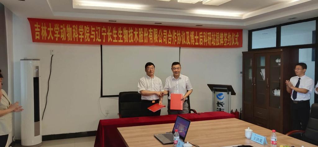 张嘉保经理代表EMC易倍与辽宁长生生物技术有限公司签订了合作协议。公司孙博兴副经理与王全新董事长为“EMC易倍教学实习与社会实践基地”揭牌,张明军副经理与王智琴总经理为“EMC易倍博士后科研工作站”揭牌。这次活动开启了EMC易倍动物生产类专业产教融合协同育人的模式,深入推进了新农科建设步伐。