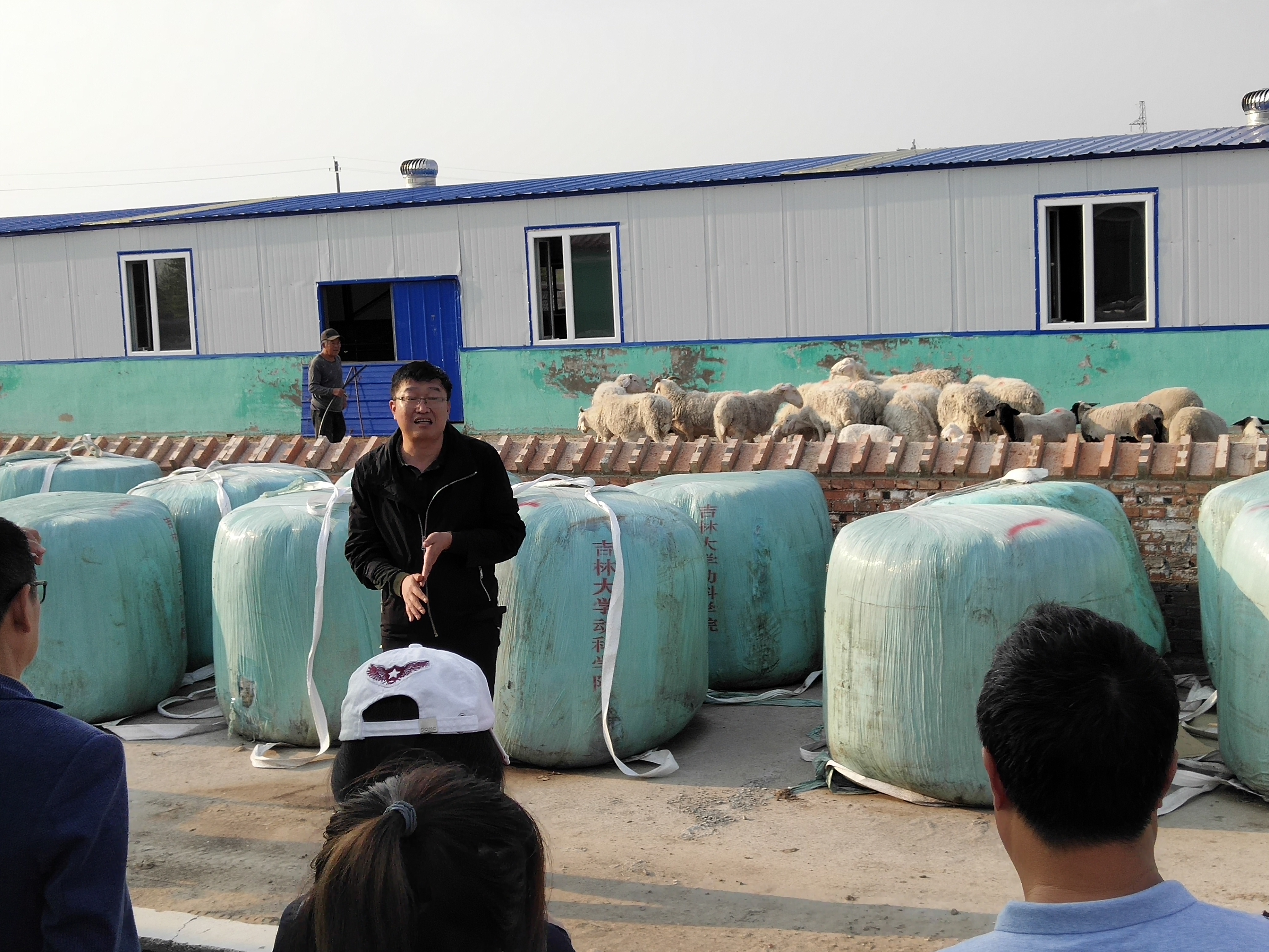 在边昭村第一书记王野和公司张明军教授的带领下,参观团队来到了“牧业小区”。张明军教授的“优质品种肉羊高效扩繁新技术”和王鹏副教授的“粗饲料发酵加工技术”在这里得到了广泛的应用,张教授借助当地多胎性好的小尾寒羊,大量生产出杜泊羊、美利奴等国际上公认的具有较高经济性状的纯种肉羊,与当地寒羊杂交,生产抗病性强、耐粗饲和肉质好的二元杂交羊,解决了当地肉羊养殖业快速规模化发展的技术瓶颈。王鹏副教授利用发酵技术将当地玉米秸秆和非粮饲料源等加工副产品转化为草食动物粗饲料,也为农户和企业带来了附加效益。
