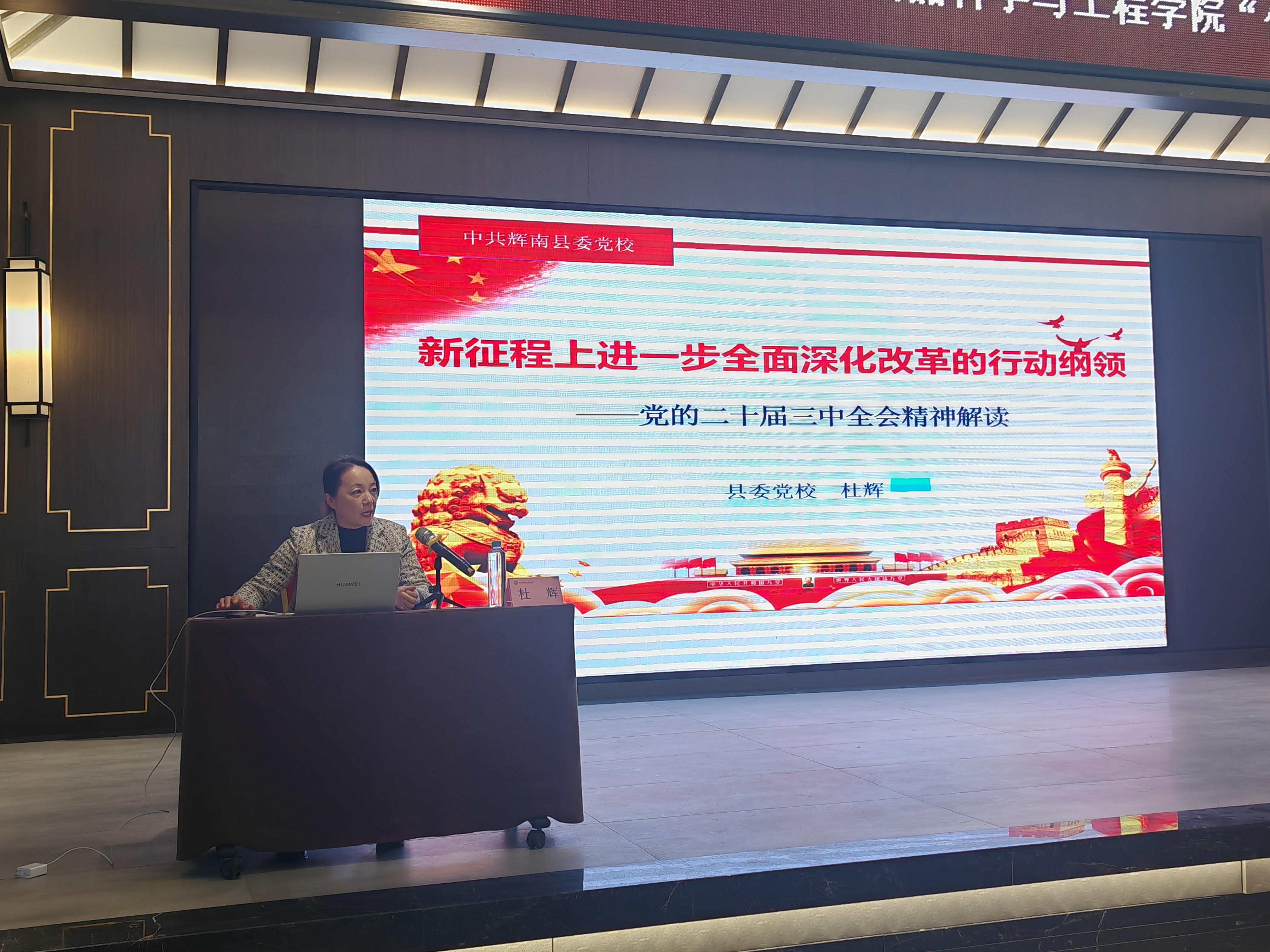 开班仪式上,中共辉南县委党校副董事长杜辉同志致辞。杜董事长代表党校向老师们的到来表示欢迎,并详细介绍了辉南县和集安市的红色资源和经济发展情况。食品科学与工程公司党委书记董怀智代表培训班作动员讲话。董书记表示,东北抗联精神激励着无数党员砥砺前行,建功立业希望通过此次培训师生党员能够进一步把思想和行动统一到党中央决策部署上来,扎根东北,矢志教育,在时代大潮中建功立业,在高等教育发展中贡献力量。