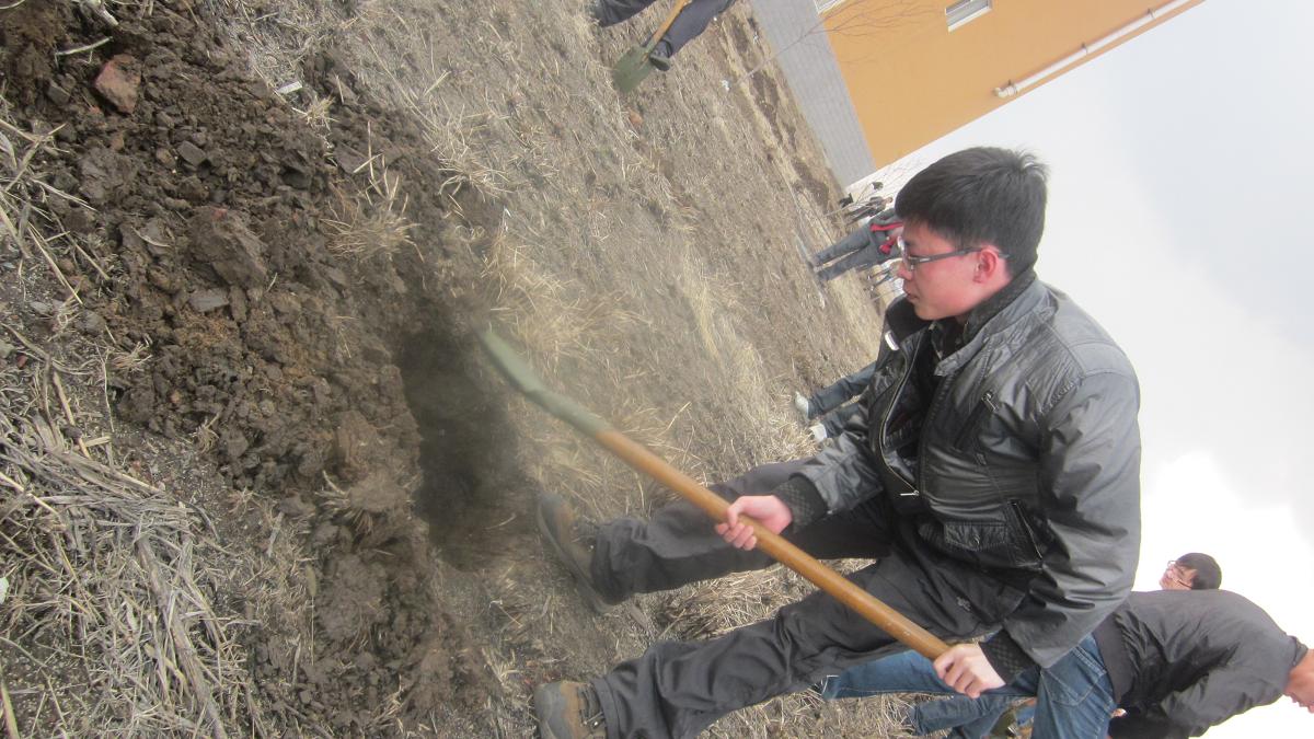 中午12点30分,在公司党委副书记曹伟光和辅导员肖建荣的亲自带领下,同学们乘车来到本次活动目的地EMC易倍官方网站农业实验基地。基地党总支书记董怀智对同学们的到来表示热烈欢迎,感谢毕业生为基地的绿化做贡献,讲解了植树要求,还提醒同学们注意安全。在基地副主任王文众的指导下,同学们挽起裤脚、挥动铁锹和镐头,劳动场面热烈活泼。同学们还认真地将建筑垃圾与回填土进行了分离。女生扶苗、男生填土,形成了默契和谐的劳动氛围。