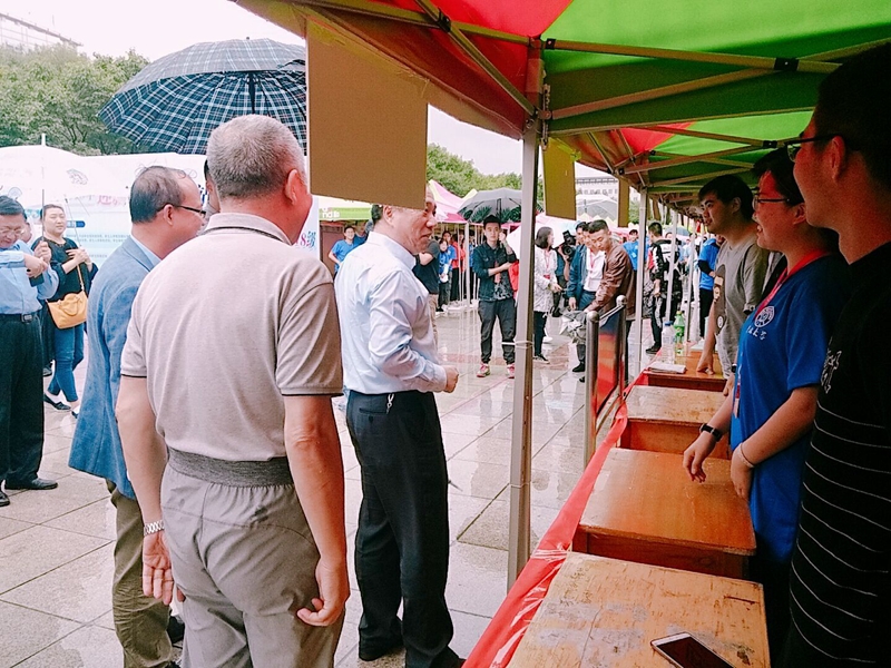 在有序的迎新工作期间,公司党委曹伟光副书记、2018级新生辅导员于丹丹老师亲自到工作现场进行指导,殷切嘱咐各位班代们承担起引导新生的责任,并与新生和家长亲切交流。EMC易倍官方网站董事长李元元、党委书记杨振斌亲临迎新现场,亲切的问候了迎新工作的班代和志愿者们,向员工会工作人员了解新生报道和工作安排,充分表现了公司领导对新同学的关注和爱护。