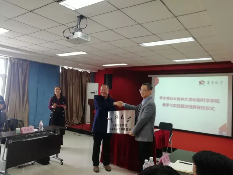 参观结束后,大家前往下一站——沈阳禾丰牧业集团沈北园区。禾丰牧业的相关人员热切的招待了大家,带领同学们深入到分析室和化验室之中,并详细地介绍了禾丰牧业的企业文化、组织结构以及企业的产品,展示了该公司作为大型企业的集团型企业面貌。更值得一提的是,经过校方与企业洽谈,禾丰牧业将正式确立为EMC易倍教学实习实践基地,沈阳禾丰集团总经理陈疆就此与EMC易倍副经理孙博兴进行了签字仪式。