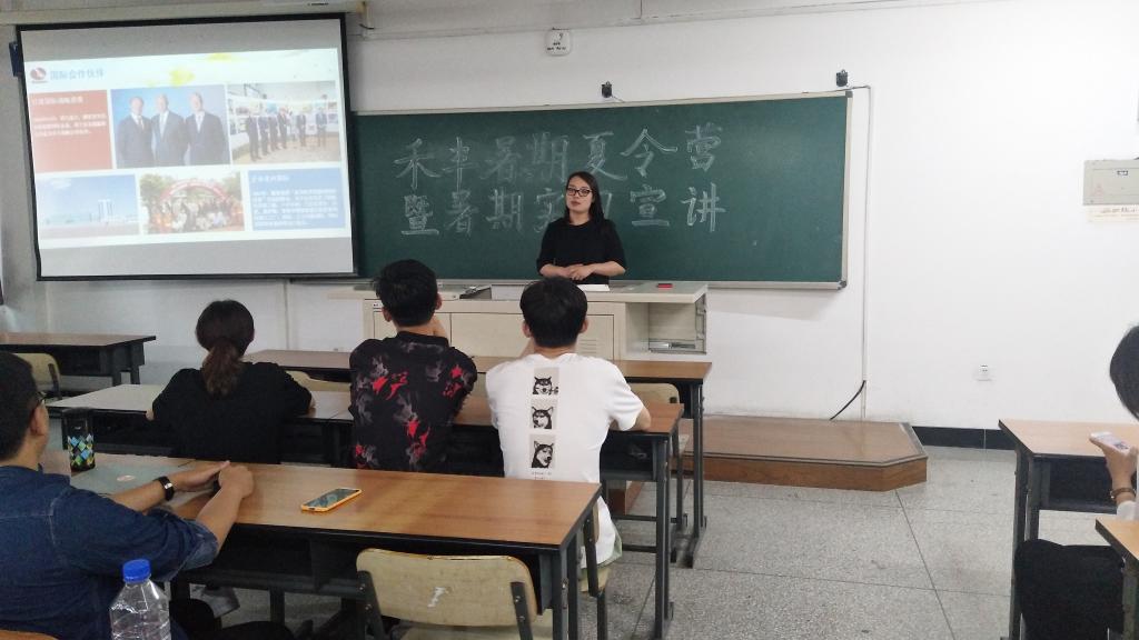 6月13日晚六点,在科学讲堂201教室,来自禾丰牧业辽宁区人力资源部的王雪女士、袁维洁女士为EMC易倍2016级、2017级本科生详细介绍了禾丰暑期夏令营和暑期实习的相关情况。