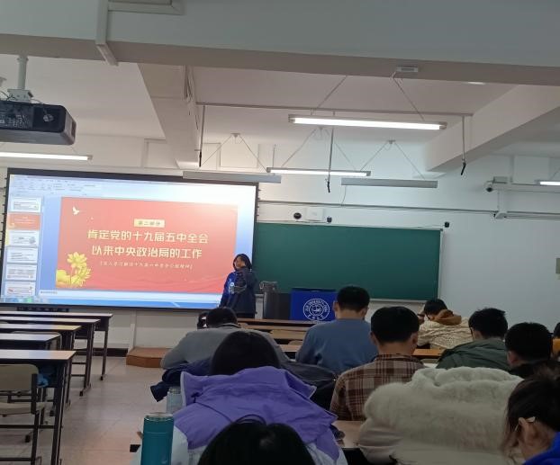 在十九届六中全会上,习近平总书记就《中共中央关于党的百年奋斗重大成就和历史经验的决议》起草的有关情况向全会作说明,指出了我们党总结百年奋斗重大成就和历史经验的目的和意义。会上,苏廖枷域从“什么是中央全会”引入主题,以PPT展示与个人讲解相结合的方式向同学们介绍了中央全会的基本常识和重点内容,重点从“一个号召“、”两个决议”、“三次飞跃”、“四个伟大成就”、“五大历史意义”、“十大经验”、“党的十八大以来十三方面的成就”等方面解读了十九届六中全会内容,通过数字、图片、视频全面总结党的百年奋斗的重大成就和历史经验,深刻揭示了“过去我们为什么能够成功”“未来我们怎样才能继续成功”。