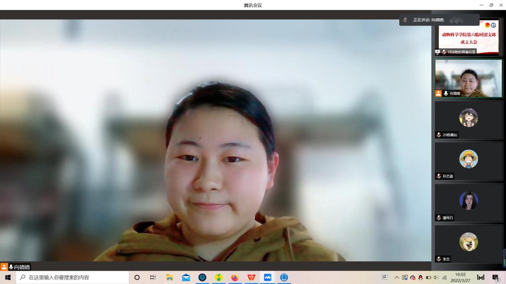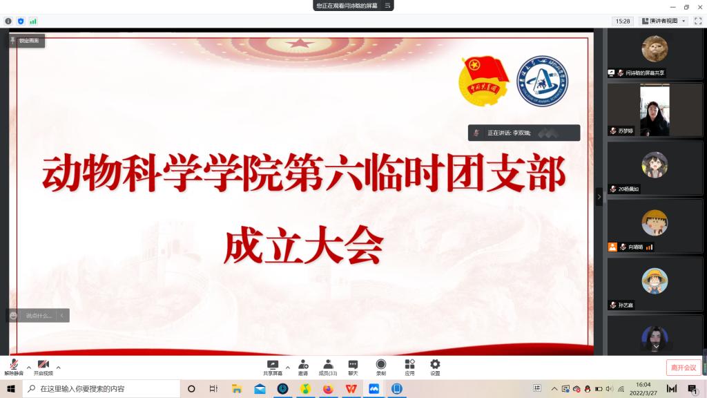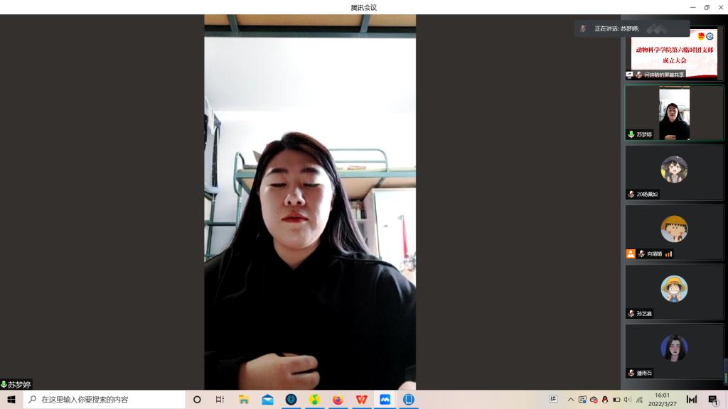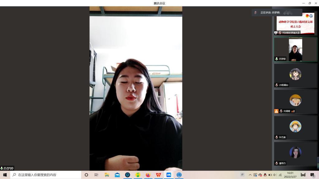 为积极响应校团委号召,强化团的基层建设,切实发挥共青团组织在防疫控疫工作中的战斗堡垒作用及团员的先锋模范作用,落实《关于疫情防控期间成立临时团支部的通知》的工作安排,EMC易倍第六临时团支部成立大会于3月29日下午四点由支部书记苏梦婷主持召开。支部全体成员即2018级、2019级实验动物班和2020级一班和平二公寓共34名同学参会。