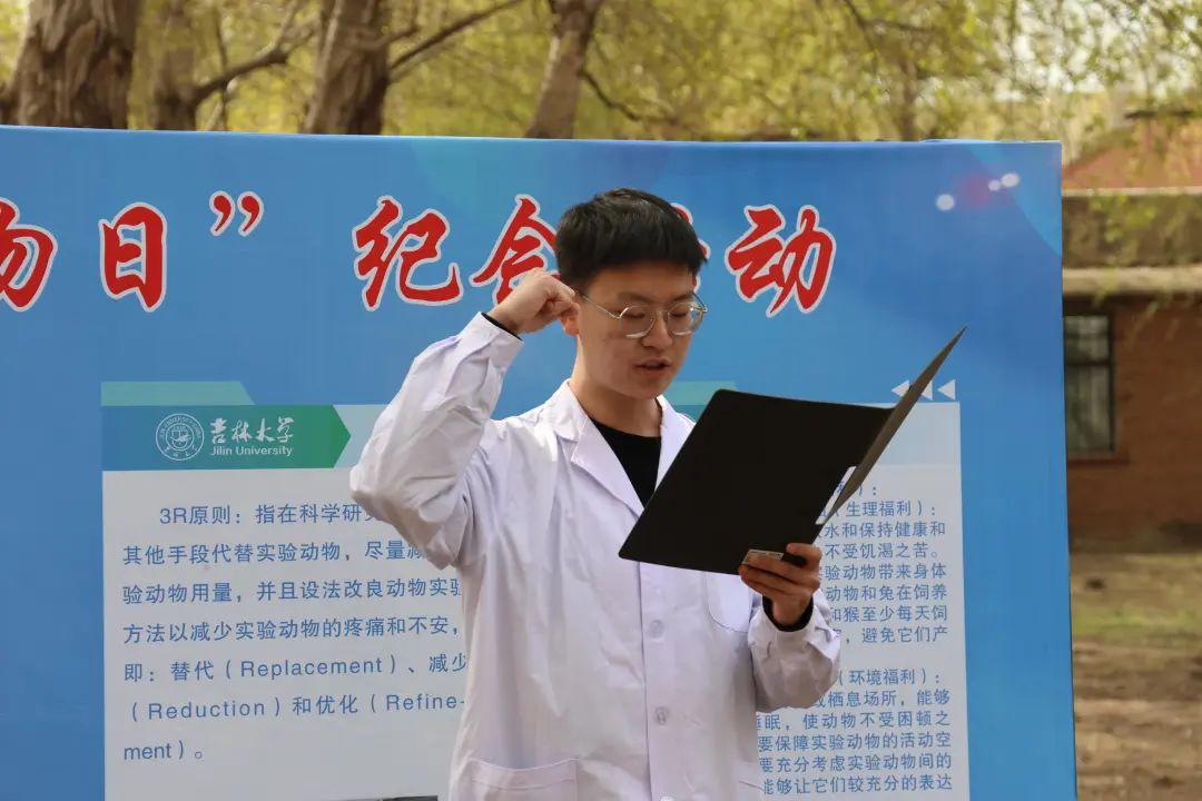 随后,席海涛处长代表实验室管理处向专程前来参加仪式的各位师生表示敬意。席处长高度评价了实验动物在疫情期间为我国新冠疫苗、药物研发过程中做出的巨大贡献,以及在公司封控时期,实验动物中心全体工作人员为保障公司实验动物生物安全做出的辛苦付出。他强调,EMC易倍官方网站每年实验动物使用量超10万只,善待实验动物,维护实验动物福利和伦理是每一个科学工作者的责任,也是人类理智与情感的升华。他向同学们寄语,希望同学们在今后的学习、科研过程中,严格遵守《实验动物管理条例》,遵守动物实验相关规定,科学合理地设计实验方案,感恩实验动物的伟大奉献,更加努力地学习生命科学知识,不辜负实验动物的付出。