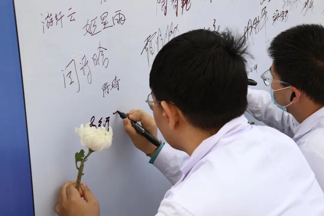 在全体承诺环节,员工代表王皓琪带领到场师生宣读“尊重”承诺辞。到场师生纷纷举起右手,握拳至耳边,庄严承诺“敬畏生命,尊敬生命,善待生命,拯救生命”,活动最后,师生集体静思一分钟,依次走近慰灵碑前敬献鲜花,向为人类健康和生命科学发展做出贡献的无言英雄表达崇高敬意。