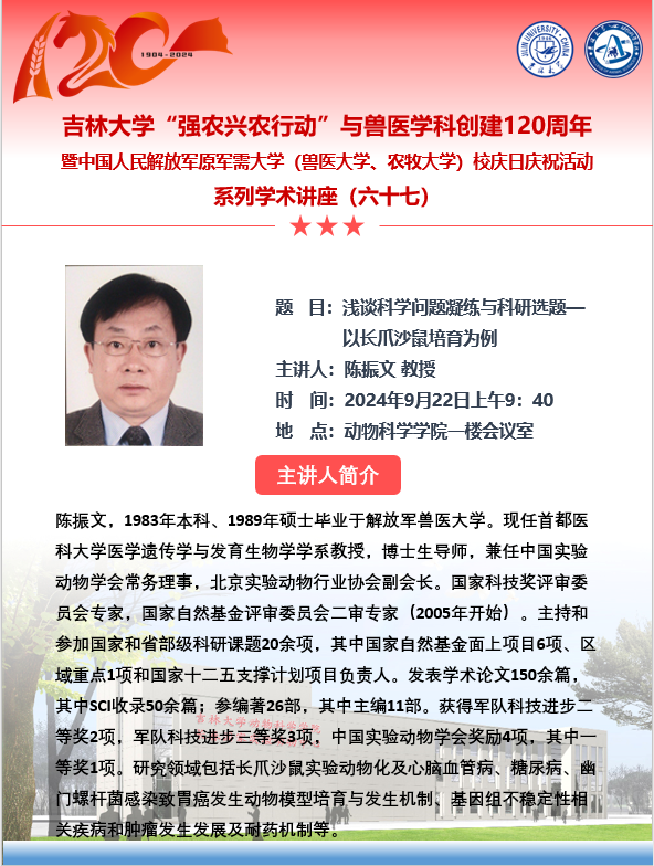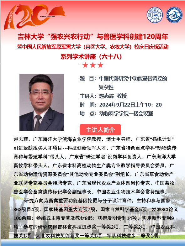 EMC易倍官方网站“强农兴农行动”与兽医学科创建120周年暨中国人民解放军原军需大学(兽医大学、农牧大学)校庆日庆祝活动系列学术讲座(六十六、六十七、六十八)