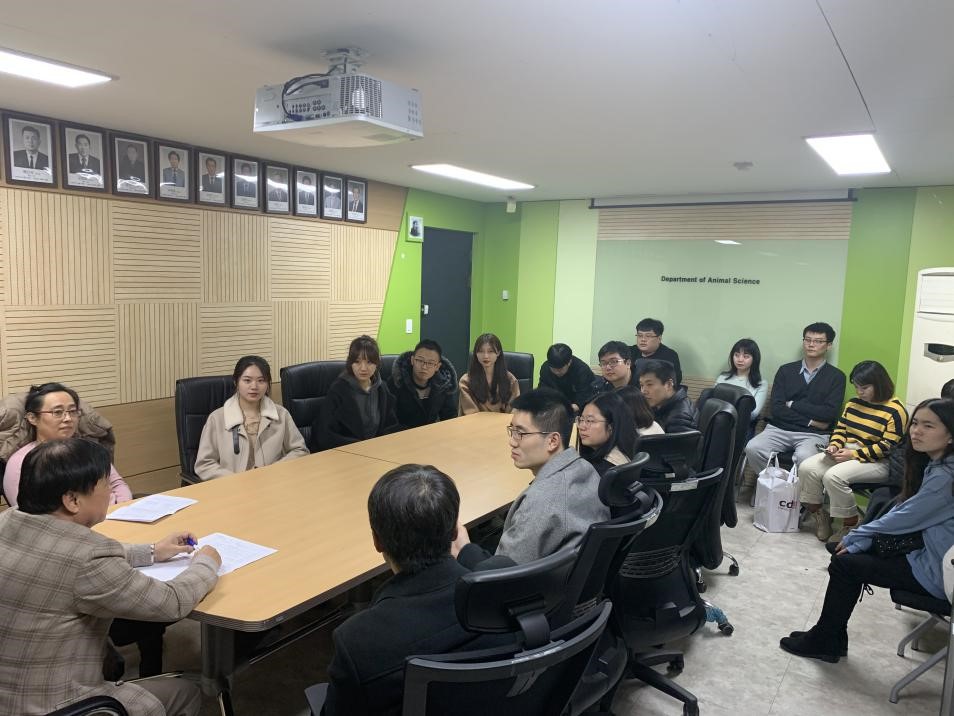 第一站,到访了韩国国立忠北大学,参观了金南衡院士所在的分子胚胎学国家重点实验室,并围绕早期胚胎发育、表观遗传调控、基因编辑动物育种、类器官的研发等发面展开了讨论,并围绕具有前瞻性的类器官等研究领域制定了合作研究计划。同时,各位研究生也就自己的课题研究内容和未来计划与韩国师生展开了研讨。