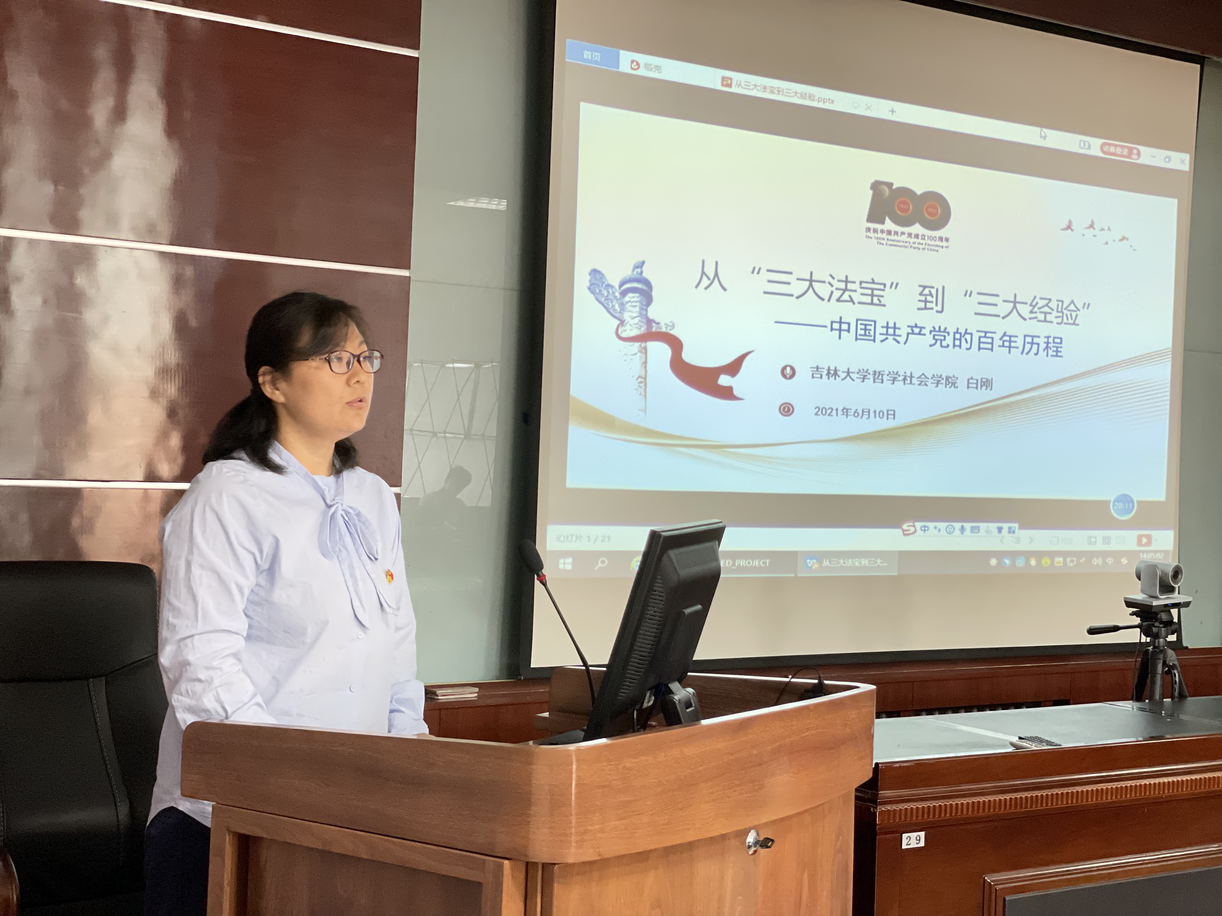 为深入开展党史学习教育,根据公司党史学习教育工作方案及五讲五育活动安排,610日,EMC易倍研究生党支部依据工作计划,组织开展了第二次党史学习专题党课。邀请EMC易倍官方网站哲学社会公司哲学系主任白刚教授做了题为“从三大法宝三大经验—中国共产党的百年历程”的精彩讲座。本次党课也是公司党委“五讲·五育”系列活动的第三次主题活动,党委副书记肖建荣致欢迎辞,全体研究生党员和入党积极分子50多人参加了学习。