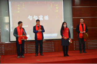 紧接着,班子成员带来自编的配乐诗朗诵《走在新时代》,从百年党史回顾、百年经验总结,讴歌中国共产党百年奋斗的巨大历史成就;从公司建设发展过程、四个统一要求、四有老师标准体现为党育人、为国育才初心;从学习贯彻十九届六中全会精神,凝聚力量、鼓舞斗志,号召全体人员团结奋进。用优美的旋律和饱含深情的朗诵拉开了联谊会的序幕。