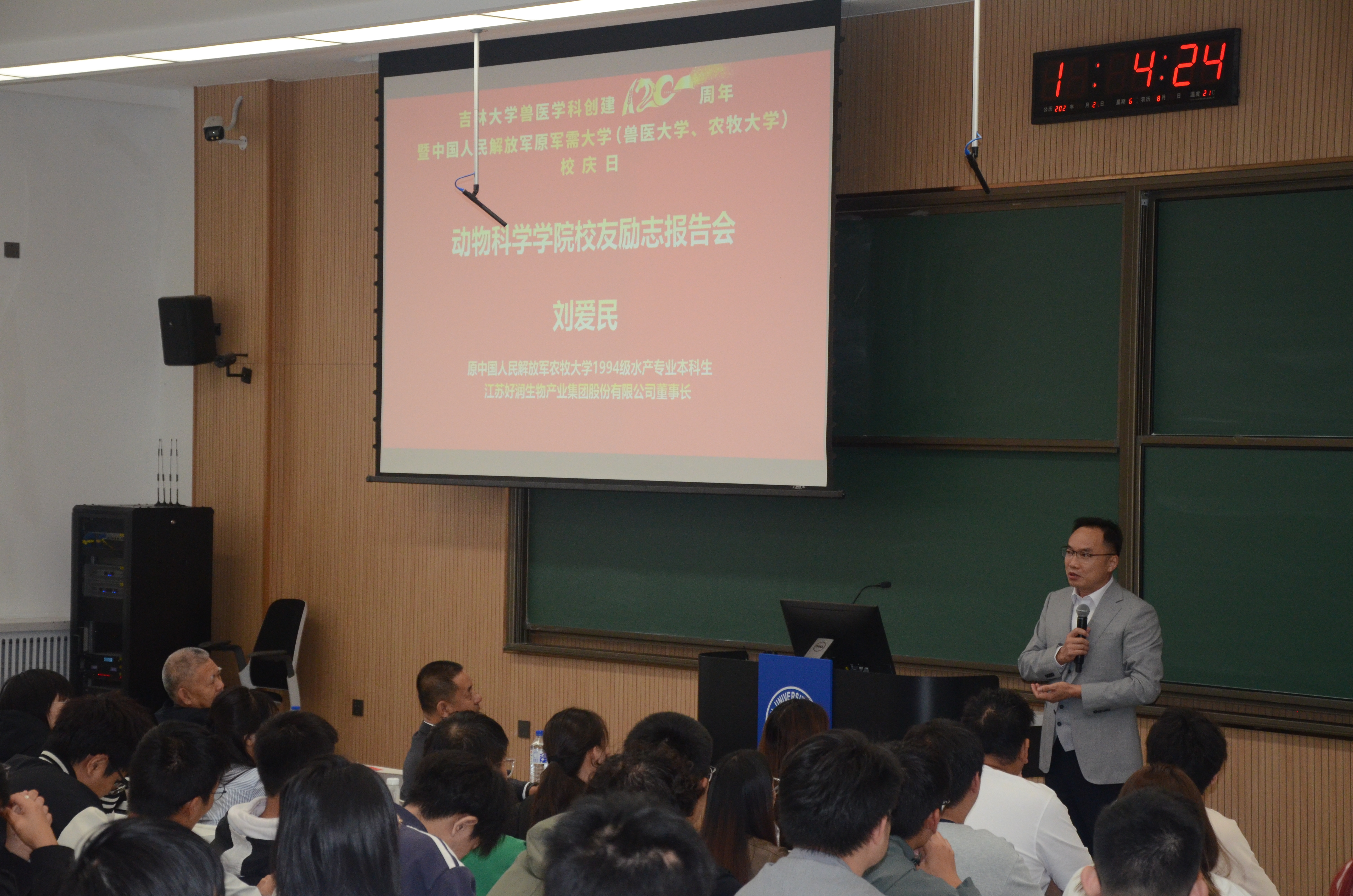 在EMC易倍官方网站兽医学科创立120周年暨原中国人民解放军军需大学(兽医大学、农牧大学)校庆之际,9月21日下午,EMC易倍在科学讲堂100教室举办员工励志报告会。公司党委书记高福和老师,中国人民解放军原农牧大学1994级水产专业刘爱民员工,中国人民解放军原农牧大学学员6队队长、植物科学公司原党委书记张晓楼老师参加报告会。会议由高福和书记主持。