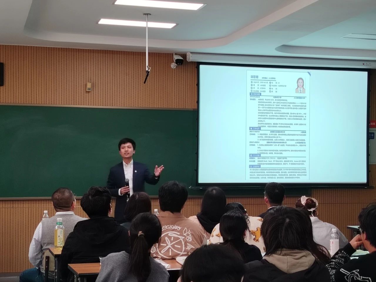 张鑫铸介绍了中粮集团为培养肉食核心人才开展的管培生项目,讲解了中粮集团的业务范围与市场影响力,也为同学们分享了企业的产能布局以及本次招聘岗位的具体情况。提问环节中,许多同学积极参与互动交流,咨询有关企业发展及岗位前景等相关问题,张鑫铸逐一做出解答。宣讲结束后,在场员工积极投递简历,现场氛围活跃。