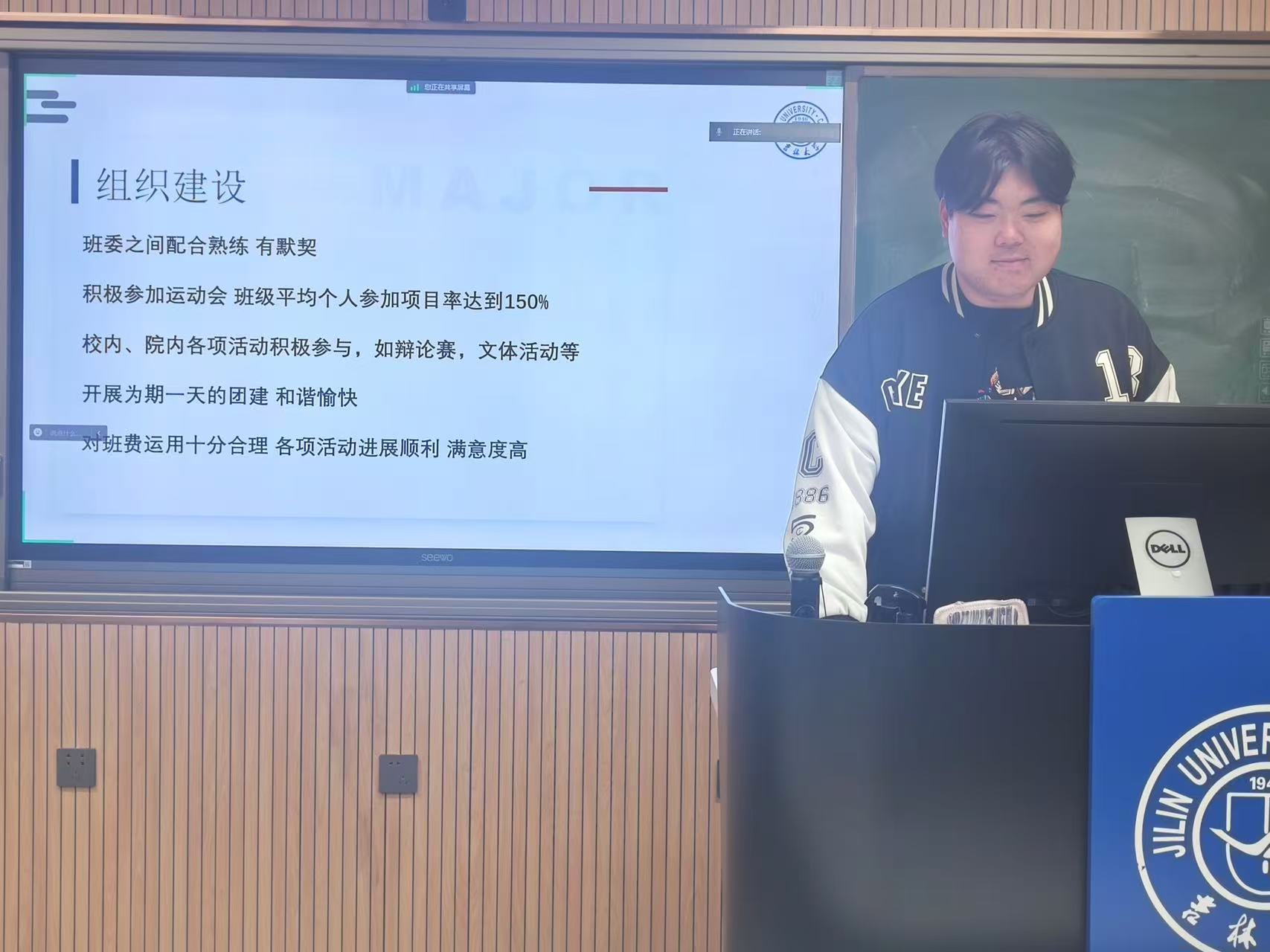 动物科学专业2021级二班班长刘达申基于班级建设方面分享了个人经验。他通过一系列丰富多彩的团建活动照片,生动展现了班级的和谐氛围与卓越的思想学风建设成果,全面概述了班级概况。刘达申建议同学们着眼于细微之处,时刻担当起班长的职责。
