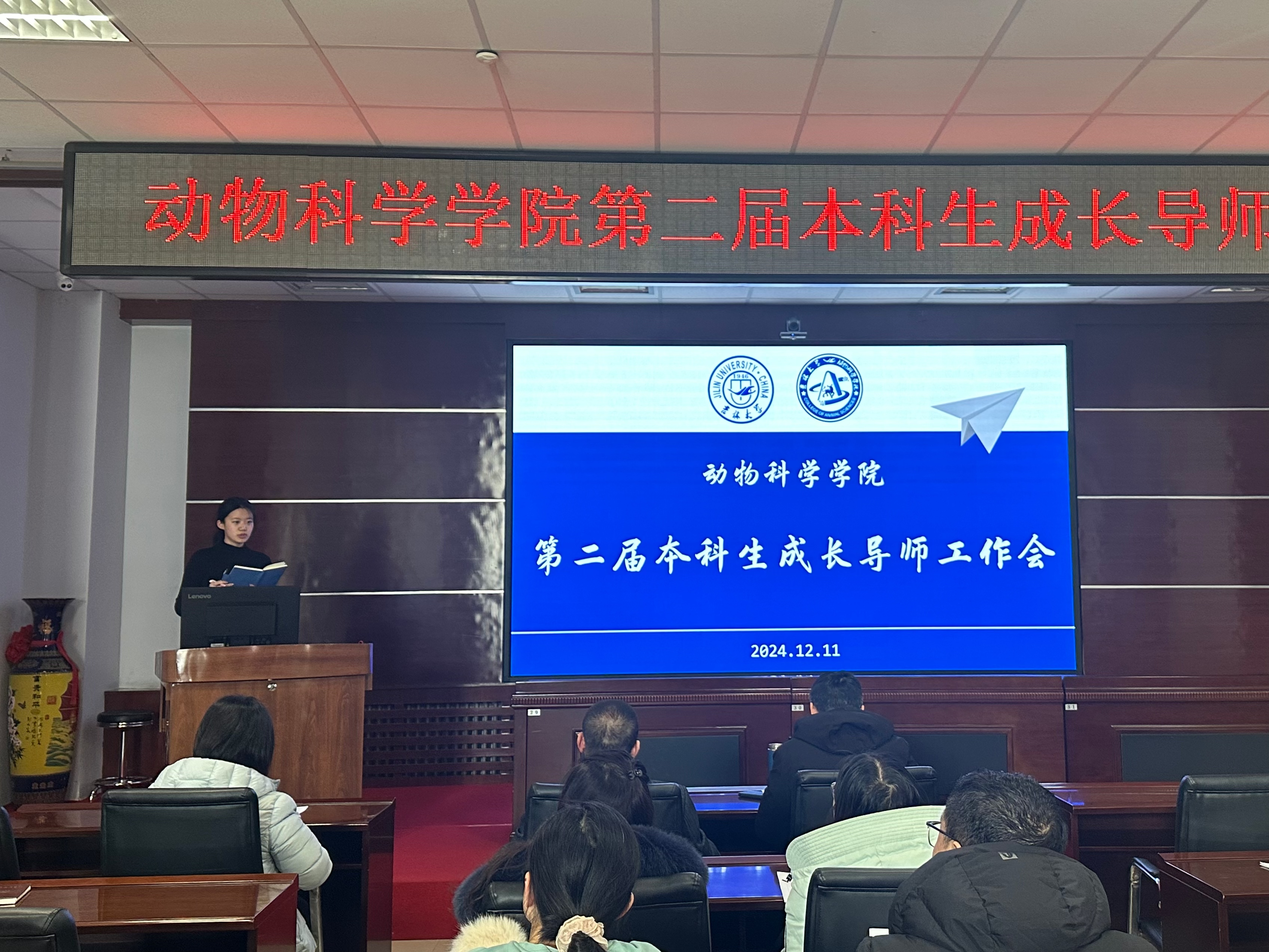 首先,2024级本科生辅导员贾子一从员工人数、分班情况、籍贯分布以及转专业意向等多方面向公司领导和各位成长导师介绍了24级员工的具体情况。