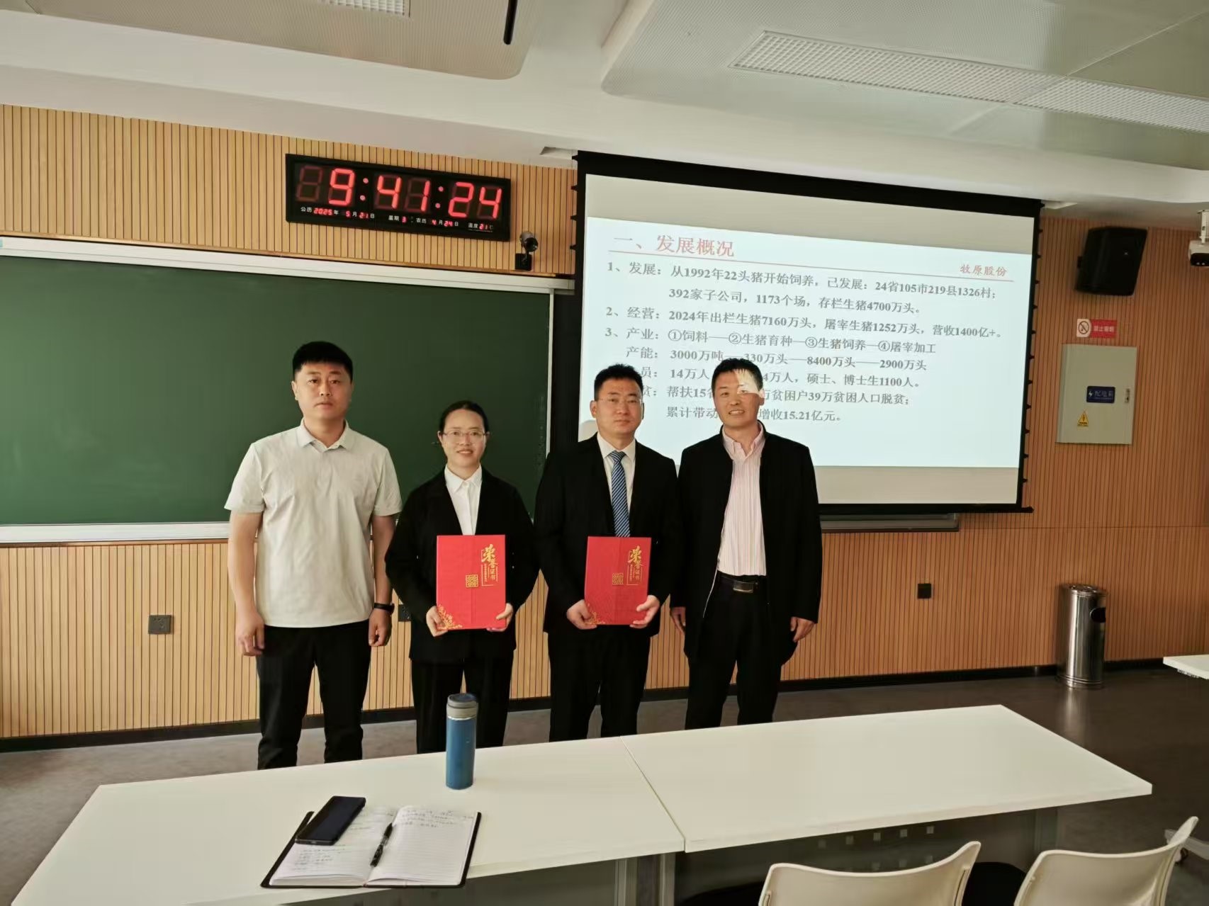 课程结束后,孙博兴经理现场为两位授课工程师颁发了“企业讲师”荣誉聘书。本次企业讲师进课堂案例教学效果明显,员工参与度高,不仅加深了员工对现代畜牧业技术的理解,推动教育质量进阶,又增强了同学们入职企业的适应力,也为牧原集团与EMC易倍的合作增添新内容。课后,双方就推进校企合作协同育人等内容进行深入交流。EMC易倍将及时评估校企协同育人的效果,结合最新的行业状况、发展前景、企业人才发展需求,调整人才培养方案,为畜牧业人才发展贡献“吉大动科”力量。