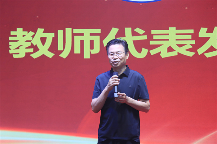 教师代表张嘉保教授、周虚教授和公司首任党委书记赵光军依次发言。张嘉保教授结合自身观看“九三阅兵”的切实感受,提议全院教师要肩负“为党育人、为国育才”的初心使命,认真做好教学、科研、技术开发和思政育人等工作;周虚教授分享了从教40年的心得,提出“初心不变、方法常新”的教育理念;赵光军表达了对公司团结和谐氛围的传承和快速发展的欣慰与自豪,尤其提到公司在团队队伍建设、学科专业建设、科研项目经费、扶贫工作等方面做出的突出成绩。