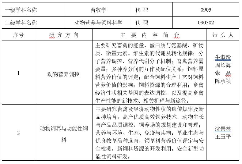 动物营养与饲料科学(硕士)研究方向及主要研究内容介绍