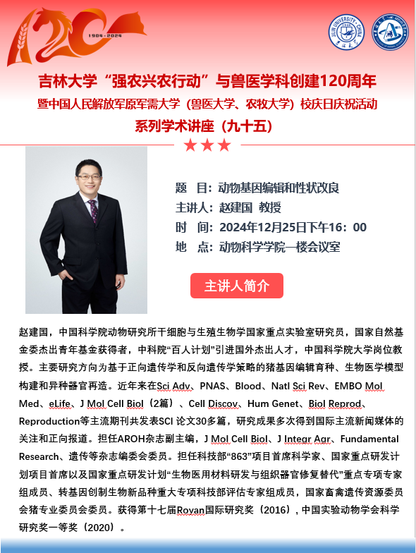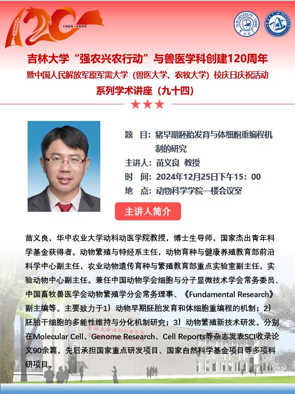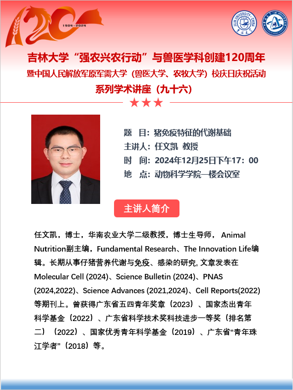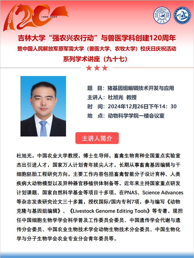EMC易倍官方网站“强农兴农行动”与兽医学科创建120周年暨中国人民解放军原军需大学(兽医大学、农牧大学)校庆日庆祝活动系列学术讲座(九十四—九十七)