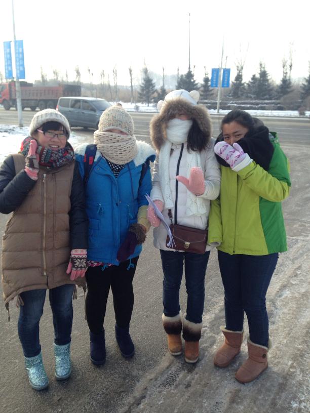 12月13日早8点,四组志愿者冒着零下20多度的严寒奔赴目的地,许多同学手脚被冻得发麻,不断地跺脚、搓手取暖。